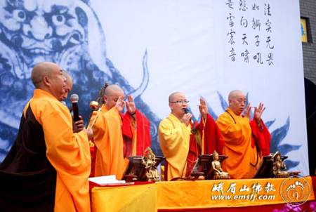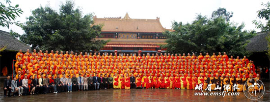 在传戒法会临近结束时,四川省政协民宗委主任董玉梅,四川省委统战部副部长王增建等相关领导及中国佛教协会咨议委员会主席惟贤长老,中国佛教协会咨议委员会副主席海山长老,中国佛教协会副会长、四川省佛教协会会长永寿法师,中国佛教协会副会长、江西省佛教协会副会长纯一法师等诸山大德来到法会现场,向此次传戒法会的圆满成功表示祝贺,并与新戒们合影留念。