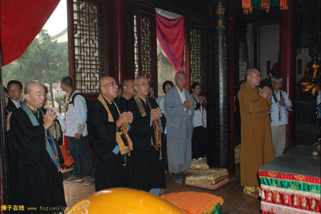 2010年10月18日,由日本高野山大学名誉教授静慈圆长老带领的“空海入唐之路——古都县巡礼道之旅”朝拜团一行40余人,到陕西省西安市青龙寺、大兴善寺进行参访,受到青龙寺、大兴善寺住持宽旭法师及两序大众的热情接待。