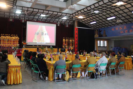 随后,贤空法师在法堂主持接待会,双方共同观看了法门寺介绍影片。般若法师对贤空法师的接待表示衷心的感谢!同时介绍了同行的法师及来自泰国、越南、印尼及中国港台的31位居士,邀请法门寺的同修有机会去澳洲参学。