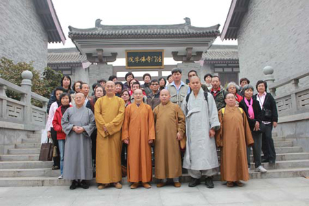 贤空法师陪同般若法师一行参观了法门寺地宫,随后在大雄宝殿虔诚礼佛。参观寺院期间,贤空法师同般若法师亲切交流,商讨了弘法利生等问题,并在法门寺佛学院门前大家集体合影留念。