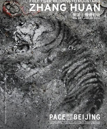 熟练掌握香灰的运用之后,他开始尝试其他内容,香灰之于张洹,就如同运用水墨或者油彩一样自如,任何内容都可以表现,于是有了这次的“放虎归山”。