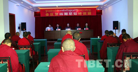 2010年10月10日,为期16天的西藏妇联第四期尼姑培训班正式开班。来自西藏拉萨、日喀则、山南三地市的20多名比丘尼学员齐聚一起,通过学习、参观及考察,增加知识,丰富见识。