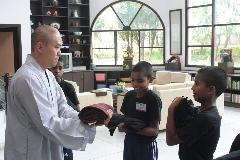 慧显法师教导德里文教中心沙弥们佛门礼仪,如何穿海青