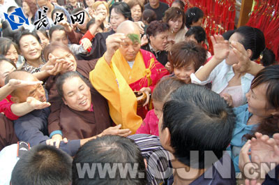 2010年10月6日,湖北武汉归元禅寺第二届“金秋祈福节”开幕,首日迎来近万名游客参与,该寺方丈隆印法师在寺院内为前来祈福的游客开光洒净,共许善愿。
