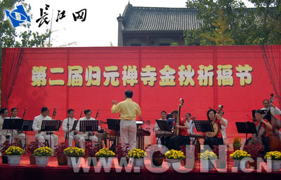 开幕式上,除大型祈福法会外,信众还可在归元禅寺内欣赏佛歌佛曲,观赏奇花异草,参观九九归元书画展。