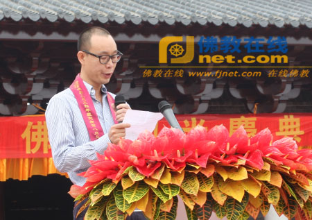 广东省佛教协会副会长、汕尾市觉源寺住持耀智法师,黑龙江省佛教协会会长、哈尔宾极乐寺方丈静波法师,广东省佛教协会会长、广州光孝寺方丈明生法师,汕尾市统战部副部长、汕尾市宗教局局长黄英钦,广东省民族宗教委员会宗教一处处长陈洁施,汕尾市市委宣传部部长杨青,居士代表谢耀群先后为觉源寺大雄宝殿落成典礼致辞并剪彩。