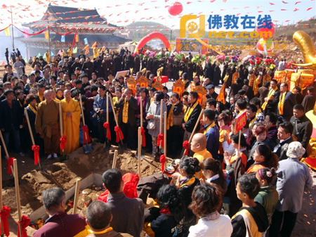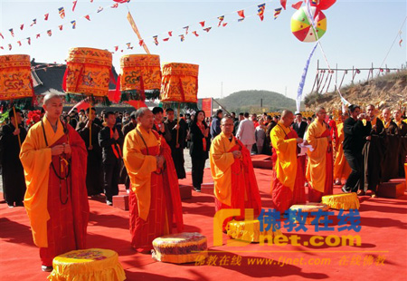 2010年10月16日(农历九月初九),恰逢重阳节,在这喜庆的日子里,辽宁大连瓦房店市抱龙禅院隆重举行了五个大殿(念佛堂、天王殿、圆通殿、大雄宝殿、藏经楼五大殿)同时奠基庆典法会。来自江苏、辽宁等地的诸山长老、虔诚居士、各界人士上千人参加了奠基仪式。