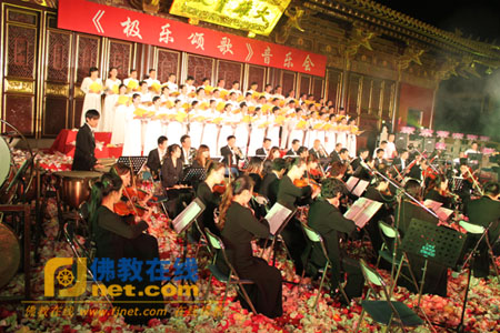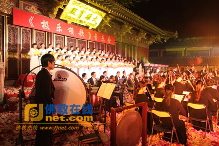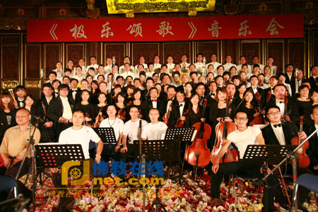 《极乐颂歌》佛教音乐会于2010年10月7日晚19点整至20点30分在净土宗第一祖庭江西庐山东林寺盛大举行,此次佛教音乐会由净土祖庭庐山东林寺、江西省歌舞剧院交响乐团、江西省歌舞剧院合唱团联袂奉献。来自包括香港、台湾在内的全国大部分省市自治区以及美国、日本、新加坡和越南等国家的2000多信众将观看这场演出。
