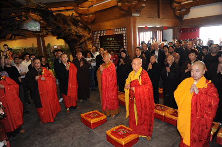 仪式后,诸山长老分别为信众及现场嘉宾进行了开示,并对中央美院教授任世民创作团队、国家工艺美术大师张文玉创作团队、南京师范大学教授吴维佳创作团队、浙江根雕工艺大师徐谷青等名家的高超技艺和辛勤工作致以由衷的赞赏与感谢。