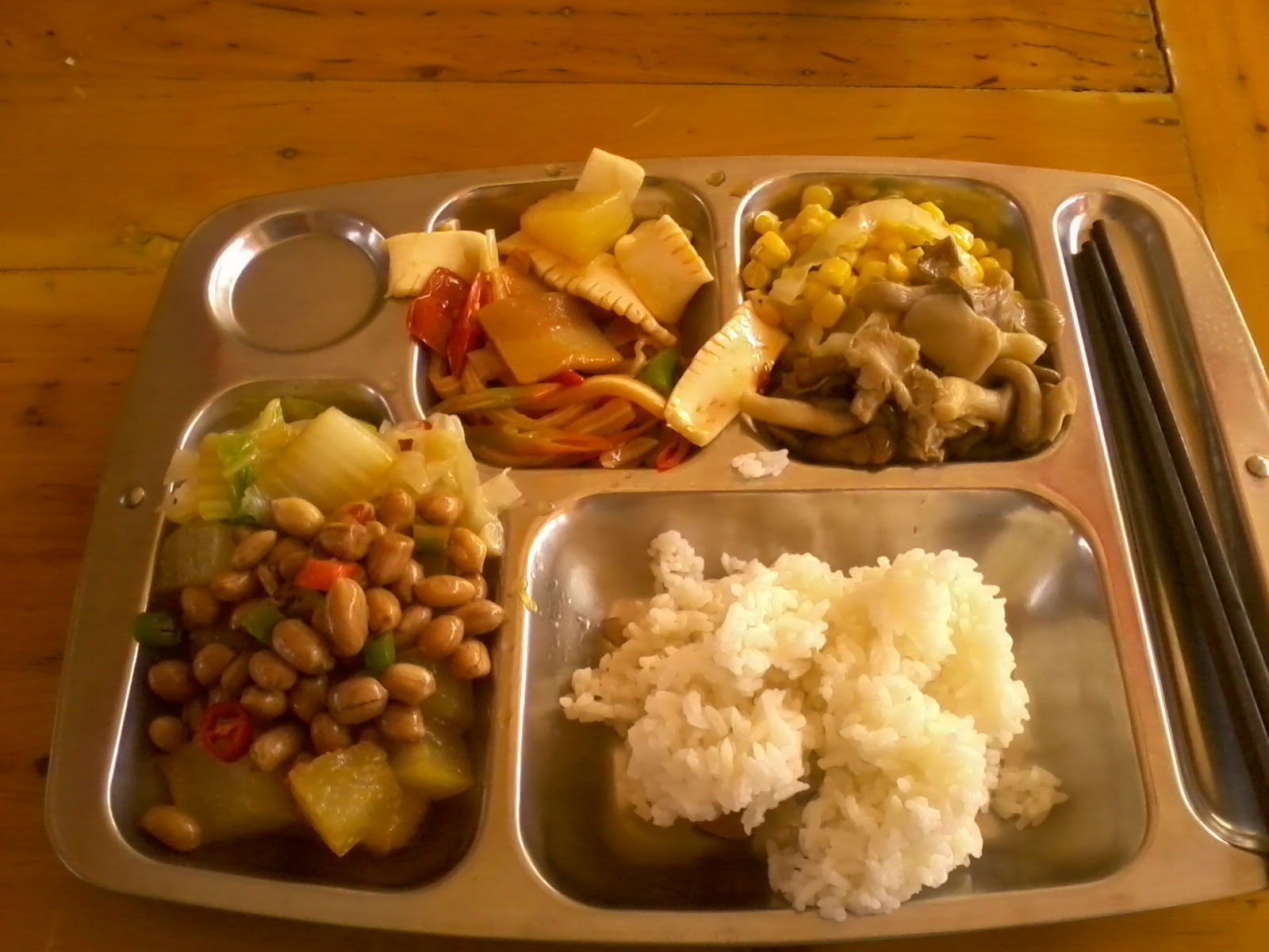 这是天门山寺的素斋,十个菜,一个汤,自助餐,才三十五块钱。但很多人一进来看到价格就说,太贵了,太贵了。我当时就想:也不想想这可是山顶,所有的食材可都是通过五千多米长的揽车运送上来的,十个菜耶。再说了,你们平时点一个肉菜也不止这个价格吧?吃众生肉就吃得觉得理所当然,吃斋就觉得心痛死了?