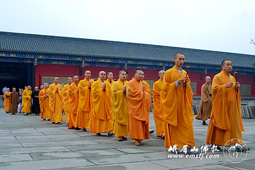 梦参长老在开示中叙述了自己与四川、与峨眉山的因缘和自身求法的历程,还和大家分享了多年来诵修《普贤行愿品》的体会。梦参长老特别强调:“有智慧才能引导行愿,有行愿才能成就智慧”;他启发每位道友,无论是参禅礼佛,还是行住坐卧,心中都要念念不忘普贤行愿,这样,我们一言一行都是在实践普贤菩萨行愿;他最后希望每位道友都来行持普贤行愿,以增长智慧、培植福田,使人和人之间亲近和谐,建设一个更加美好的世界。长老的开示深入浅出,言简意深,饱含深情,引起了在座法师和居士的强烈共鸣。