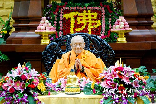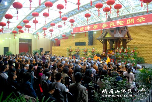 梦参长老在峨眉山大佛禅院为众作慈悲开示(图)