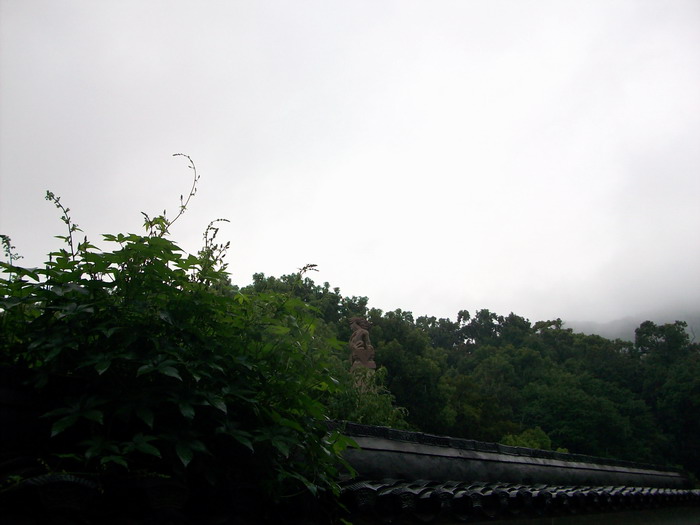 上普陀山的第二天一早,天空中下起了不小的雨。等雨小时从普济寺出发,沿着百步沙上面的路往法雨寺方向走,一路上毛毛雨,清凉的绿油油的景致令人心旷神怡!