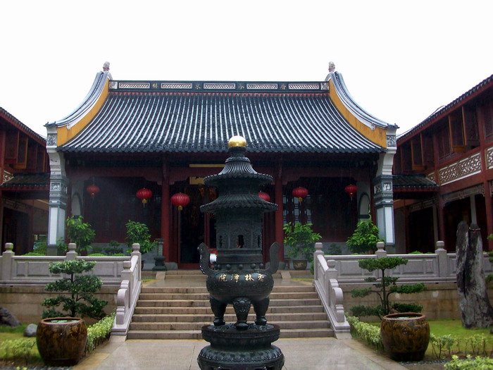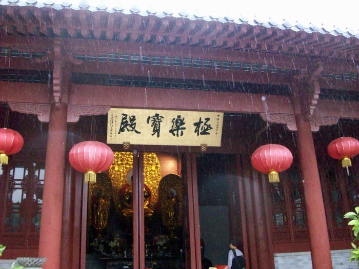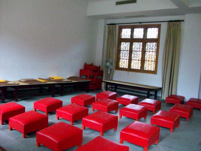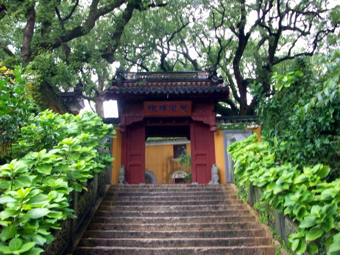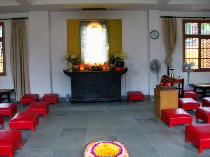 这儿地方不大,游客稀少,是个环境幽雅的清修道场。里面常住僧人不多,听那边客堂的法师讲早晚课加念佛堂共修念佛每天八小时,客堂中供的是印光祖师画像,法师问了我等平时修学情况,说要多看印祖的文钞!留我们吃了中饭,饭菜煮的不多,结果在那边道场煮饭的男居士没了饭吃!真是不好意思!
