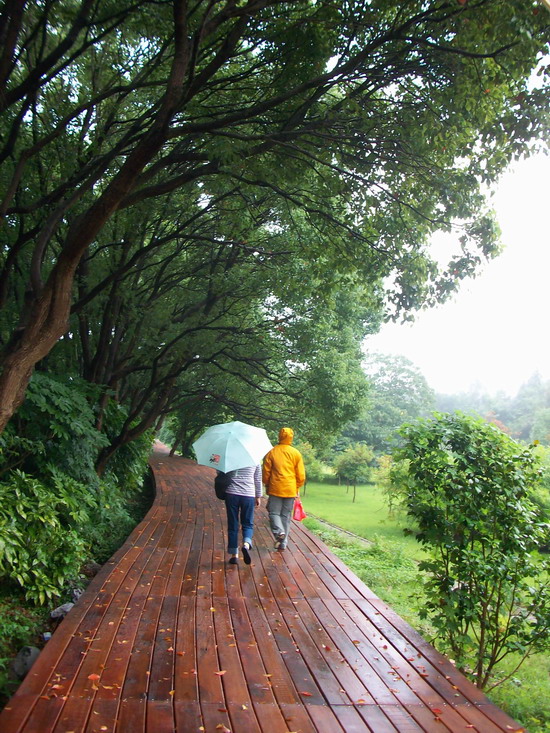 小雨还是淅淅沥沥的下,走在一条挺别致的木版小路上,很快来到了双泉庵,又是一处清幽之地!