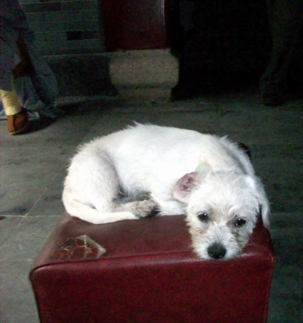 一进大门时便出来一只小白狗摇着尾巴以示欢迎。礼完佛走在静静的庭院里,小狗又过来欢喜地摇尾巴!这才想到呵呵也许哪辈子与狗的前世做过同修呢!在路上遇见人对你微笑一下都是过去生中结的善缘,无缘对面不相识啊!