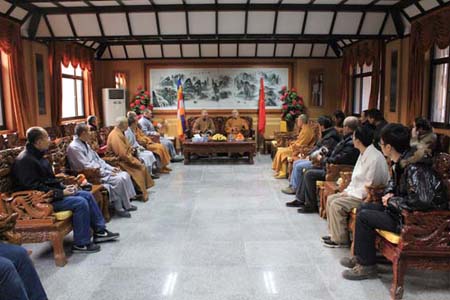 中善法师对贤空法师及各位法师的热情接待表示感谢。中善法师希望以后能和法门寺佛学院进行更多的交流和学习。随后宾主双方互赠礼品,以表情谊。