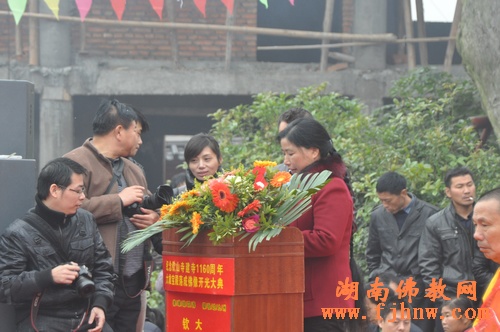 上午九点,庆典仪式正式开始,省宗教事务局傅雷副局长、澧县邓红副县长、澧县宗教局吴平华局长分别致辞,中国佛教协会副会长圣辉大和尚做重要开示,对钦山寺建寺1160年暨大雄宝殿落成庆典法会表示祝贺,同时对演佛法师近十年来恢复修缮钦山寺表示称赞。