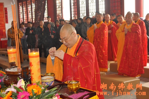 2010年11月17日上午,中国佛教协会副会长、湖南省佛教协会会长、长沙古麓山寺方丈圣辉大和尚出席常德澧县钦山寺建寺1160年暨大雄宝殿落成庆典法会。