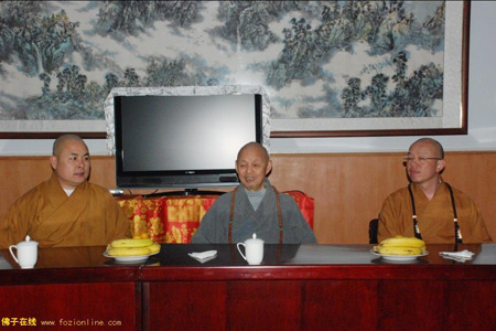 随后,净慧长老在宽旭法师等法师的陪同下前往会议室与大家座谈。净慧长老开示大众,寺院发展需要与时俱进,具有创新精神。寺院作为传播佛教文化、教义的载体,要为社会服务,具有社会性、公益性。社会性有利于社会的安定团结;公益性就是要将寺院的钱用来做公益事业,响应政府号召,将改革开放以来所取得的成绩回报给大众。只有这样,佛教才能有生命力,寺院才能得到发展。净慧长老还表示,中央政府强调要培养一批在政治上靠得住、学识上有造诣、品德上能服众的领导干部,同样我们佛教在培养教职人员时也要重视这几点。最后,净慧长老希望宽旭法师抓住时代的契机与时俱进,带领大兴善寺常住继续为弘扬佛法、光复祖庭、利益众生做出贡献,也为建设良好的、和谐的社会环境起到积极的推动作用。