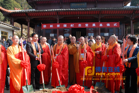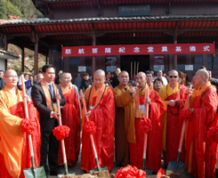 开光法会后,与会的海内外诸山长老还共同为“慈航菩萨纪念堂奠基”挥锹培土,并向慈航菩萨金身圣像行跪拜礼。随后,与会嘉宾齐聚大雄宝殿内举行“泰宁庆云寺隆重举行大雄宝殿兴建落成佛像开光法会暨慈航菩萨纪念堂奠基仪式”庆典,对庆云寺大雄宝殿的落成表示热烈的祝贺。