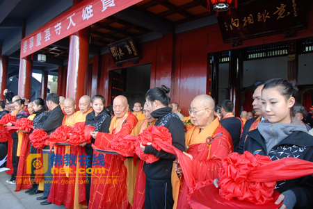 开光法会前,与会的海内外嘉宾和三明市委常委、泰宁县委书记曾祥辉,泰宁县县长廖小华,泰宁县人大主任高惠斌,泰宁县政协主席俞德光等共同为长16公里、宽5.5米、耗资1000多万元的上山进寺水泥路通车和大雄宝殿兴建落成剪彩。