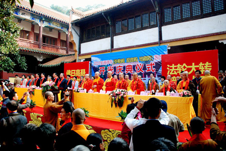 湖北省政协副主席陈春林,武汉市政协主席叶金生,武汉市政协副主席黄蔚堂,市政协秘书长王少雄,武汉市民宗委领导余立军,省政协常委、提案委员会主任邹成贵等领导出席了会议。湖北省佛协副会长坚光法师、圣君法师、宽祥法师、彻慧法师,及武昌莲溪寺退隐方丈慈学长老尼等来自全国各地的佛教界人士数千人参加了庆典活动。