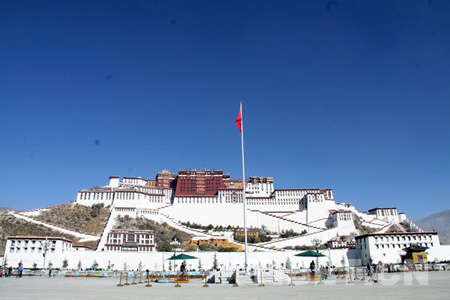 据了解,每年秋季“神降节”来临之际,为迎接佛祖重返人间,藏民族还有一个传统习俗,就是重新对寺庙或自家房屋进行外墙粉刷。今年节日来临前,布达拉宫已经完成了外墙的全部粉刷工作。在布达拉宫前的白塔下,记者看到有信众将一瓶瓶牛奶在工人帮助下,倒入粉刷白塔墙面的白灰桶里。