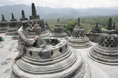 印尼担心火山灰侵蚀著名景点婆罗浮屠佛塔(图)