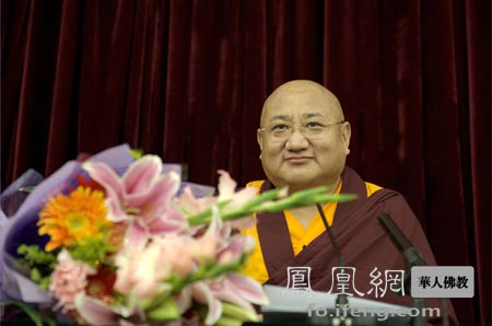 第四世夏坝活佛在中国人民大学发表演讲。(图片来源:凤凰网华人佛教 摄影:袁明)