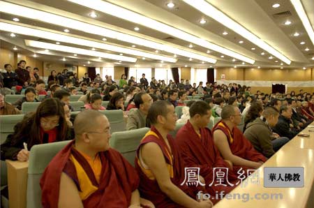 第四世夏活佛的演讲吸引了来自社会各界专家学者、学生及佛教信徒三百多人。(图片来源:凤凰网华人佛教 摄影:袁明)