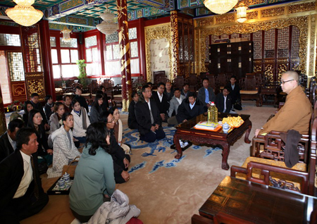 2010年11月8日上午,缅甸建设部代表团一行到北京灵光寺参访,并参拜了佛牙舍利。灵光寺监院法注法师接待了建设部代表团一行。(文:风景)