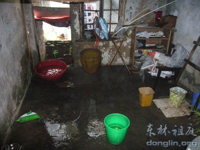 第一次进入这户人家时,那凌乱破败的景象几乎令人无法想象,两件破陋不堪的平房,根本无法阻挡风雨。我们第二次去走访的时候,刚好遇到下雨天,房顶不停地滴着渗透进来的雨水,屋子里放满了接雨水的大盆小盆。露在外面的电线,胡乱缠绕,不免让人担心安全隐患。潮湿的棉被散发着霉变的气味。
