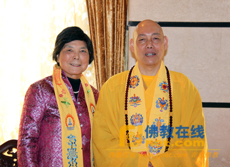 代表灵鹫山出席的中国国民党中央评议委员会主席叶金凤女士与道慈法师合影留念