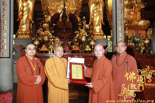 2010年11月17日,世界僧伽会会长、台北善导寺董事长兼住持了中长老一行60余人参观了厦门市南普陀寺和白鹿洞寺。
