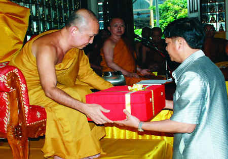 泰国宗教部代表向Pannavaro法师移交援助金