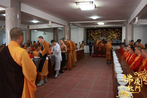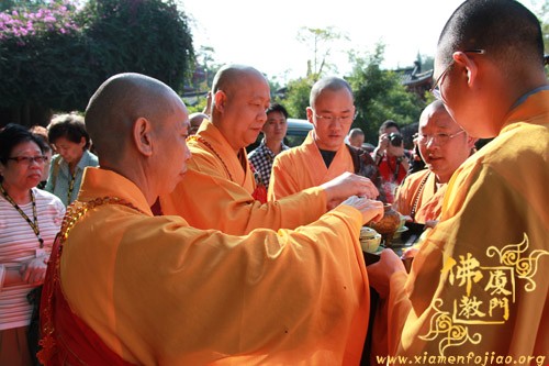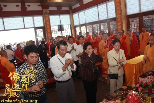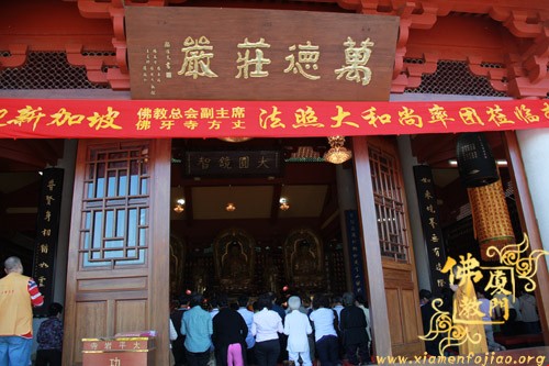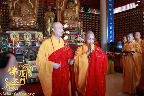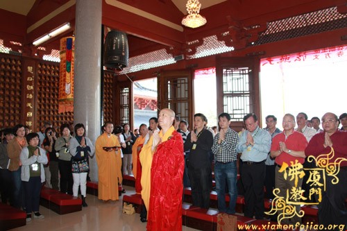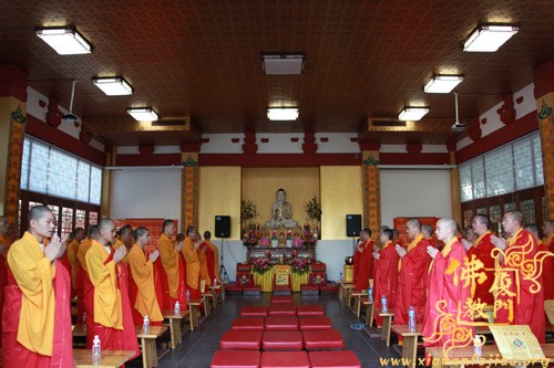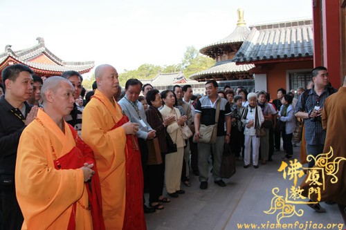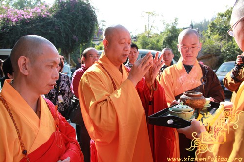 今天上午,新加坡佛教总会副主席、佛牙寺方丈、护国金塔寺方丈法照大和尚一行一百余人在厦门市佛教协会副会长、鸿山寺住持法云法师的陪同下到厦门太平岩寺举行斋僧植福祈安法会。