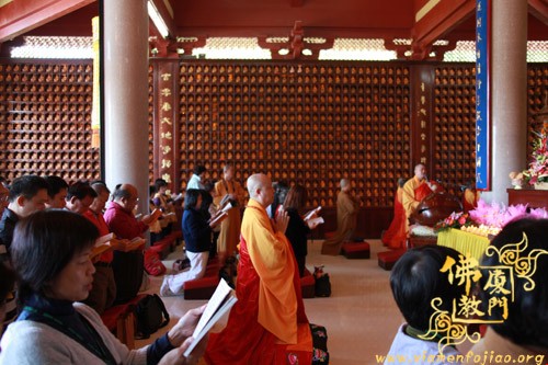 9点50分,钟鼓齐鸣,太平岩寺住持世澄法师领众在山门外热情迎接新加坡法照大和尚一行的到来。法照大和尚拈香后,法云法师、世澄法师陪同法照大和尚到太平岩寺大雄宝殿隆重举行斋僧植福祈安法会。参加斋僧法会的一百多位法师分别在大雄宝殿礼药师普佛,在法堂恭诵《药师经》、药师咒、称念药师佛圣号。佛事结束后,世澄法师领众过堂,新加坡护法居士如法供养三宝,所谓财法二施等无差别,檀波罗蜜具足圆满。