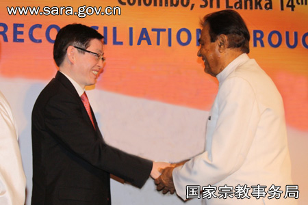 王作安局长在开幕式上与斯里兰卡总理亲切握手