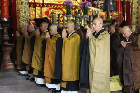 9点30分,日中僧众云集佛殿举行了诵经祈祷法会,诵经结束后日本僧人又到道元禅师得法灵迹碑前诵经回向,以表感恩之情。