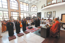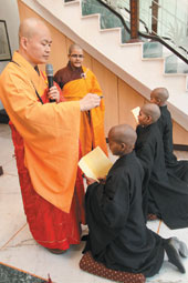 心培法师除为沙弥剃度主法外,并对与会的国际来宾,介绍佛光山全球五大洲、两百多所道场,秉持星云大师的佛光山“教育、文化、慈善、共修”四大宗旨的弘法努力,期许大家多认识佛光山在印度的德里、加尔各答、菩提迦耶的佛教中心。