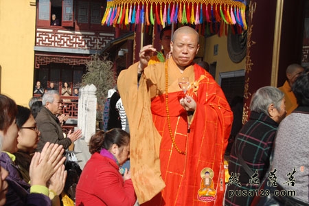心澄法师为信众撒净水