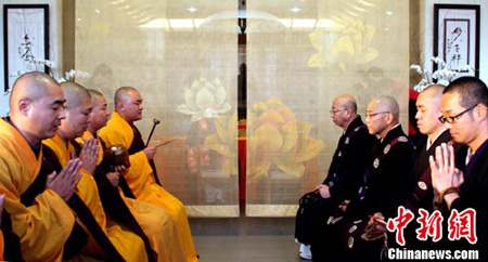 7日,扬州大明寺方丈能修法师与日本东大寺管长北河原公敬率两寺僧众在鉴真像前举行法会