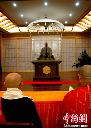 2010年12月7日,江苏省扬州大明寺方丈能修法师与日本东大寺管长北河原公敬率两寺僧众在鉴真像前举行法会。