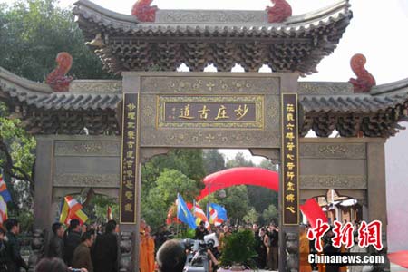 12月7日,在“海天佛国”浙江舟山普陀山南天门景区妙庄严路口处,一座由全铜打造的古香道铜牌坊落成。据牌坊设计者介绍,这是中国第一座铜制牌坊。