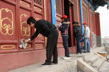 华北电力大学保定校区大学生到真觉禅寺体验义工生活