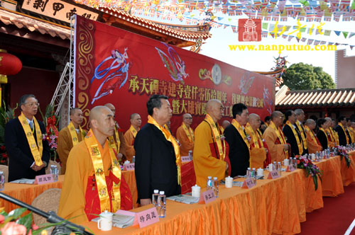 应邀出席此次活动的领导嘉宾有:福建省民宗厅施文常务副厅长、一处高闽处长,省统战部林尊海调研员,泉州人民政府李建国市长、陈荣洲副市长,泉州市民宗局胡晓泉局长、黄尚模副局长等;(本阜)中国佛教协会副会长、闽南佛学院院长圣辉大和尚,中国佛教协会副会长正慈大和尚,福建省佛教协会副会长、福州开元寺方丈本性大和尚,省佛教协会副会长、厦门佛教协会会长、南普陀寺方丈则悟大和尚,省佛教协会副会长、福州雪峰寺住持广霖大和尚,省佛教协会副会长、厦门佛教协会常务副会长、观音寺住持定恒大和尚,省佛教协会副秘书长、厦门佛教协会副会长、闽南佛学院副院长法源法师,省佛教协会副秘书长、厦门佛教协会副会长、鸿山寺住持法云法师,厦门佛教协会副秘书长、太平岩寺住持世澄法师,泉州佛教协会会长道元大和尚、副会长理任大和尚、副会长常定大和尚以及泉州佛学苑全体师生;(外阜)新加坡毗卢寺住持慧雄大和尚,新加坡普济寺住持法达法师,台湾恒光禅寺代表传平法师,台湾中国佛教理事会贤明法师,台湾金门佛教会理事长性海大和尚,香港知名人士施子清先生、孙立川博士等海内外高僧大德以及社会各界人士、广大居士信众数千人。