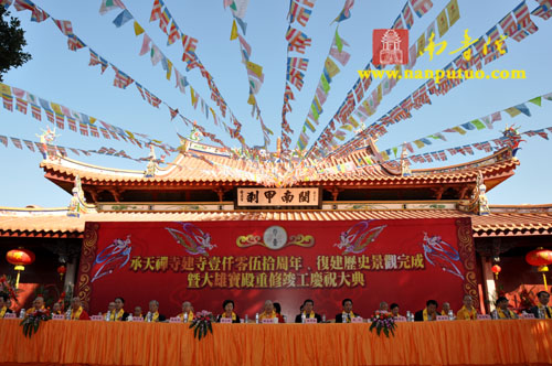 盛世逢盛会,古寺展新颜。为纪念建寺1050周年暨重光20周年,素有“闽南甲刹”美誉的泉州承天禅寺于2010年12月7日至8日举办月台别院开馆仪式、弘一大师化身处纪念碑揭幕仪式、讲经堂落成揭牌仪式、广钦佛教图书馆揭牌暨广钦老和尚铜像揭幕仪式、书法展开馆、建寺1050周年暨重光20周年庆典大会、复建历史景观完成暨大雄宝殿维修竣工剪彩仪式等系列活动,向世人展现千年古寺悠久的历史和迷人的新姿。