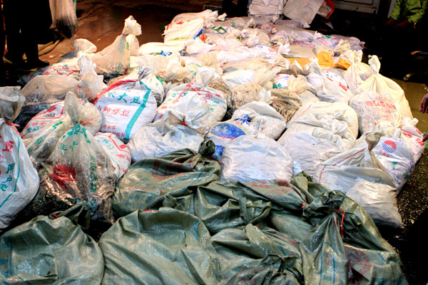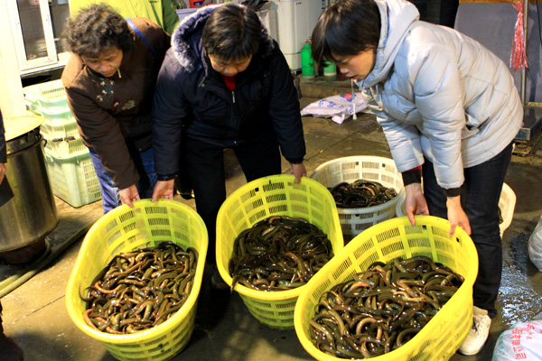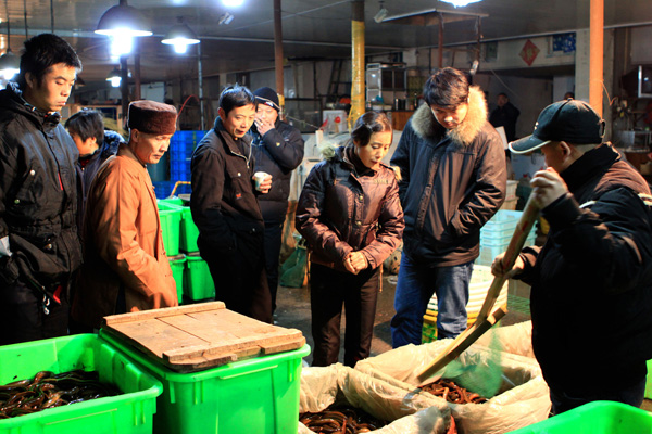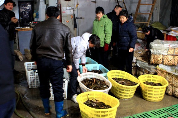 询问价格 沥尽余水 等待过磅 过磅 不舍一物 装袋 求佛加持 至诚祈愿 待放物命 装车 随缘开示 放归运河 今年的十一月初四日,是印光法师生西70周年的纪念日,又适逢中国佛学院灵岩山分院建校三十周年。在这样一个特殊的日子,弘化社放生小组会同灵岩山悟成老法师、万定法师,以及周边的一些居士,举行了一次放生活动。 突如其来的冷空气,使得苏城一下子进入了冬天,但三十多位同修还是在凌晨1点,准时在水产市场集合。有从上海专门驱车前来的一对同修,有从苏州一所大学赶来的一些师生。 在紧张的询价、过秤、装袋后,简短而庄严的放生仪式,在悟成老法师的带领下举行,至诚恳切的念佛声在杀业颇重的水产市场回荡,不仅滋润着见者闻者的识田,也寄托着我们为物命祈福的愿望!南无阿弥陀佛、南无阿弥陀佛、南无阿弥陀佛…… 放生仪式结束后,悟老法师小声嘱咐大家分头去放。本次放生共投入资金6万元,分7个不同地方放归自然。 放生结束,我们共同祈愿,印光老法师早日再来!也祈愿所有众生,都能善根增长、念佛精进,蒙弥陀慈光加被,求生净土,安享真常!