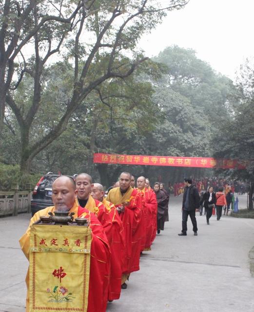(中国佛网讯)12月6日上午9时,重庆华岩寺隆重举行“华岩寺佛教书屋”开业庆典。华岩寺法师为“华岩佛教书屋”开光洒净,书屋店长为开业庆典致欢迎辞,社会各界也纷纷为书屋的开业祝贺。华岩寺佛教书屋是由华岩寺方丈道坚法师发起成立,前期筹备一年多,收集了佛教大藏经等各类佛教图书及传统文化书籍,为广大佛学爱好者及佛弟子们提供一所专业佛教书店和具有人文气息的传统文化传播中心。目前,华岩寺佛教书屋是西南地区最大的宗教书屋之一。书屋提供了大量的佛学基础、经藏、修行方法、高僧大德传、佛教艺术类画册、佛教线装书以及儒学、道学等各类文化书籍,开业当天,读者们纷纷认真读阅,踊跃请购。